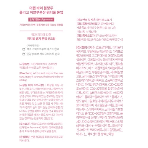 | 화장품제조업자, 화장품책임판매업자 및 맞춤형화장품판매업자 | 컨텐츠 참조 | 제조국 | 대한민국 |