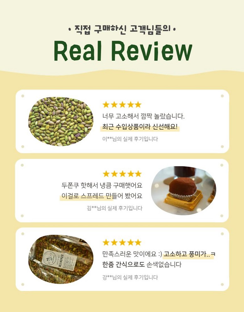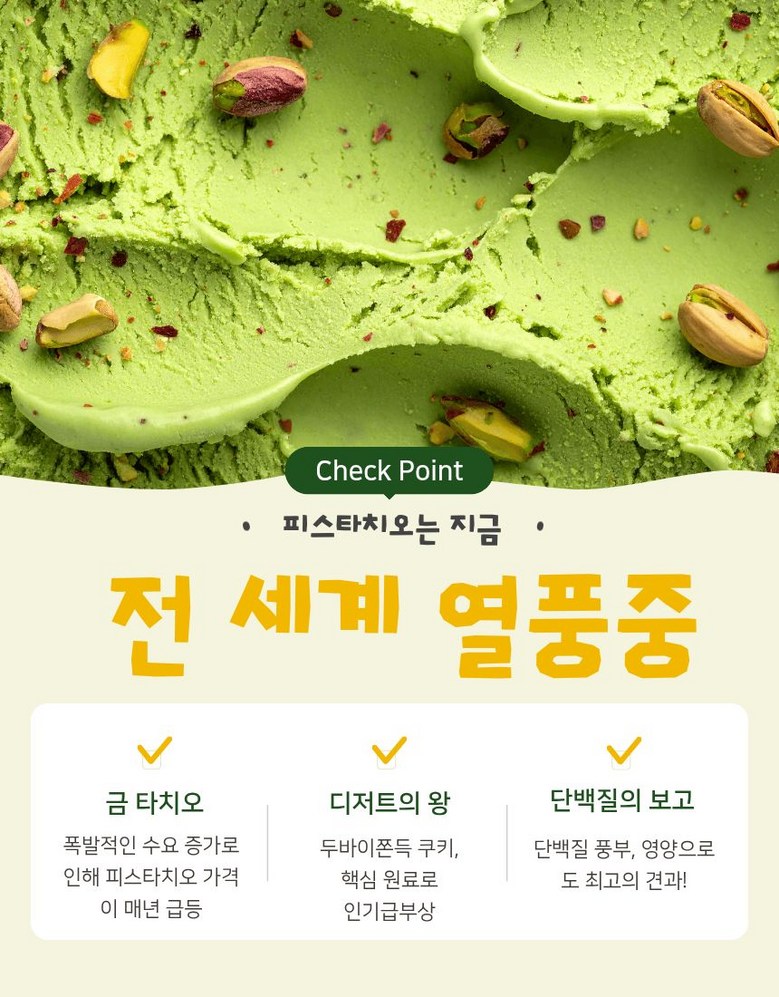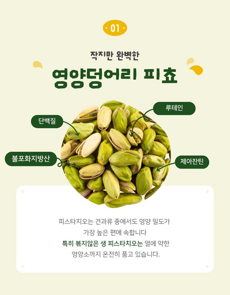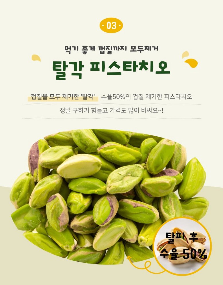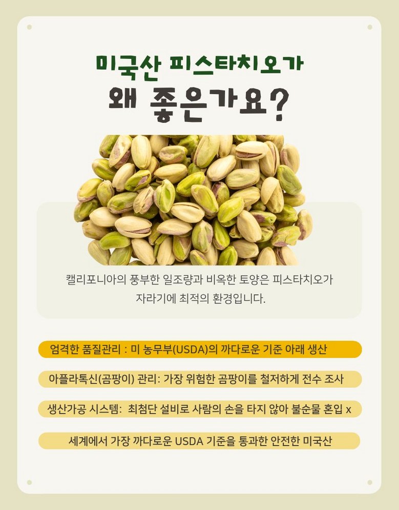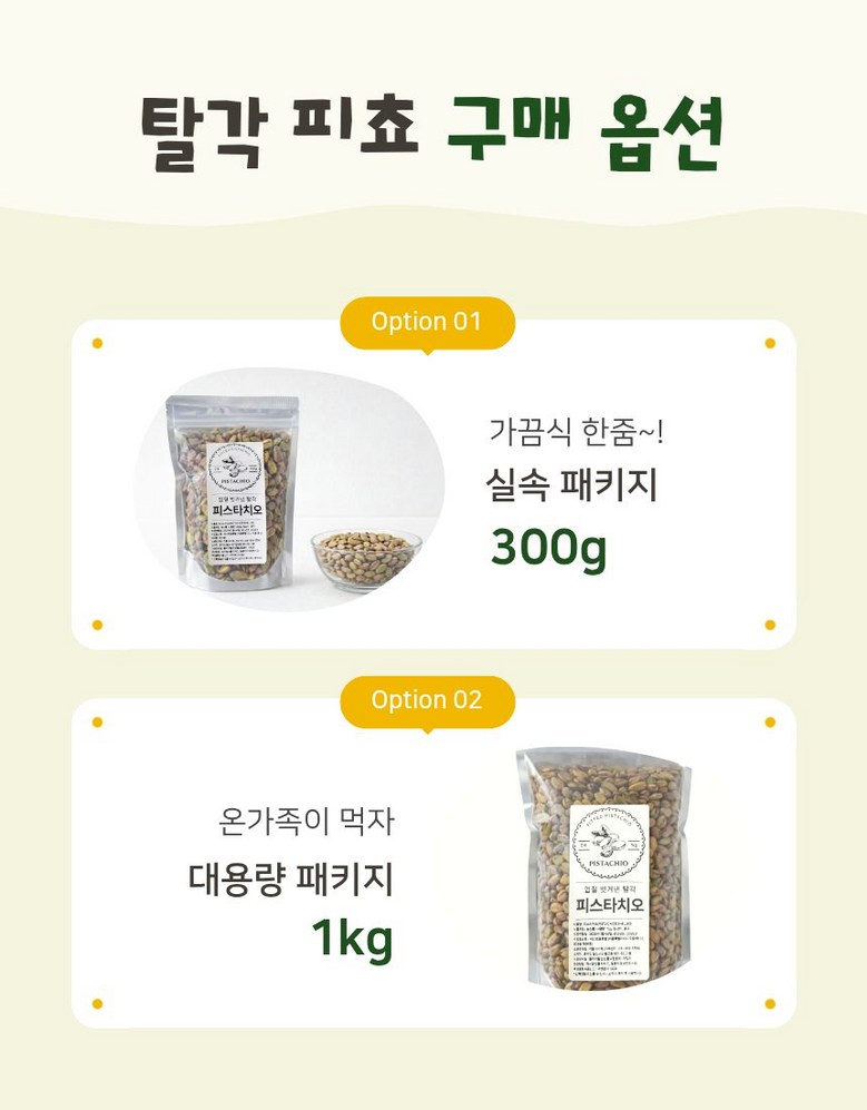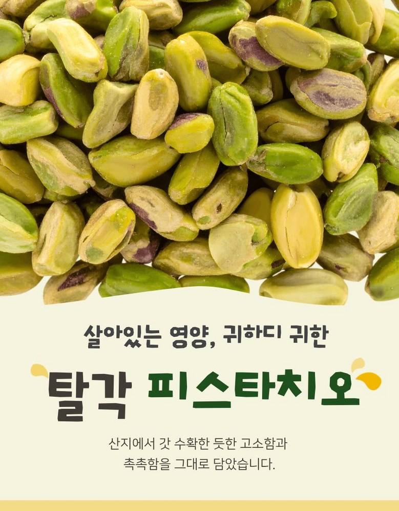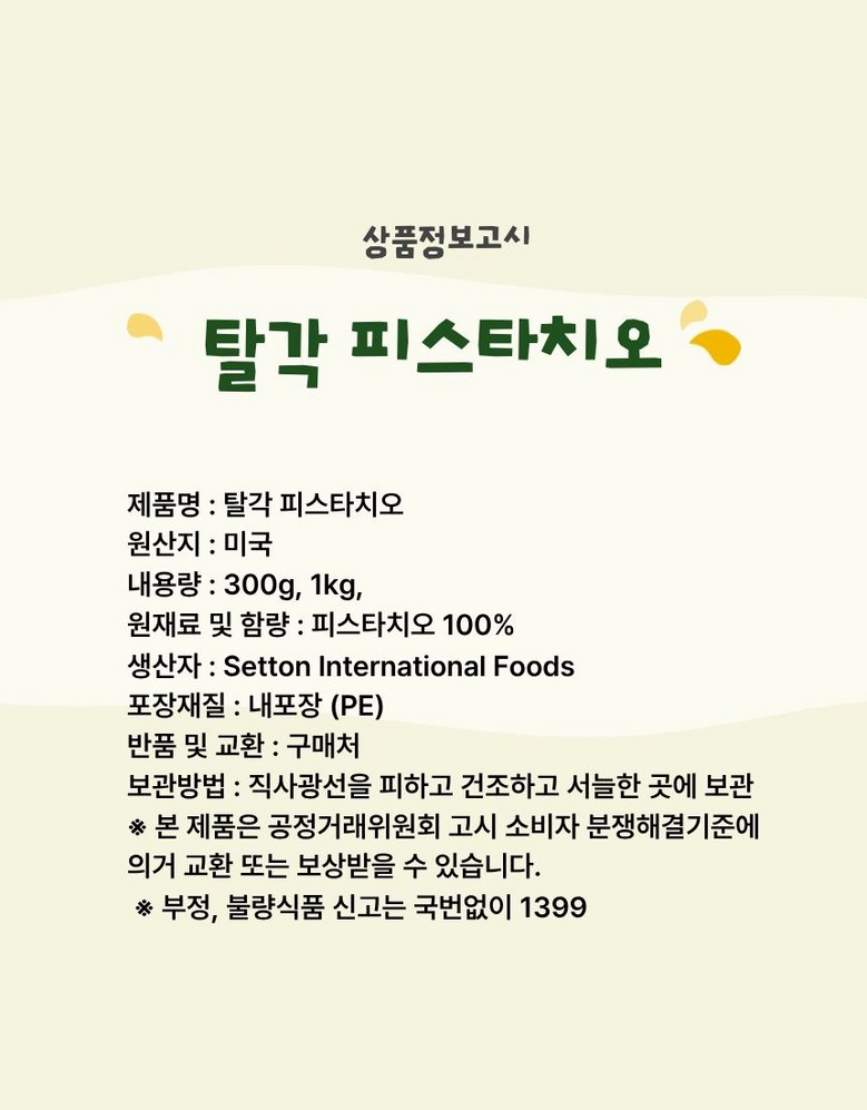 | 품목 또는 명칭 | 피스타치오 | 포장단위별 내용물의 용량(중량),수량,크기 | 100g, 300g, 1kg |