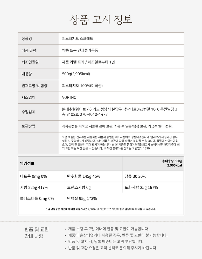 | 교환/반품 비용 (왕복비용) | 5,000원 - 단, 고객 변심의 경우에만 발생 - 도서산간 및 일부 지역 추가비용 발생 |