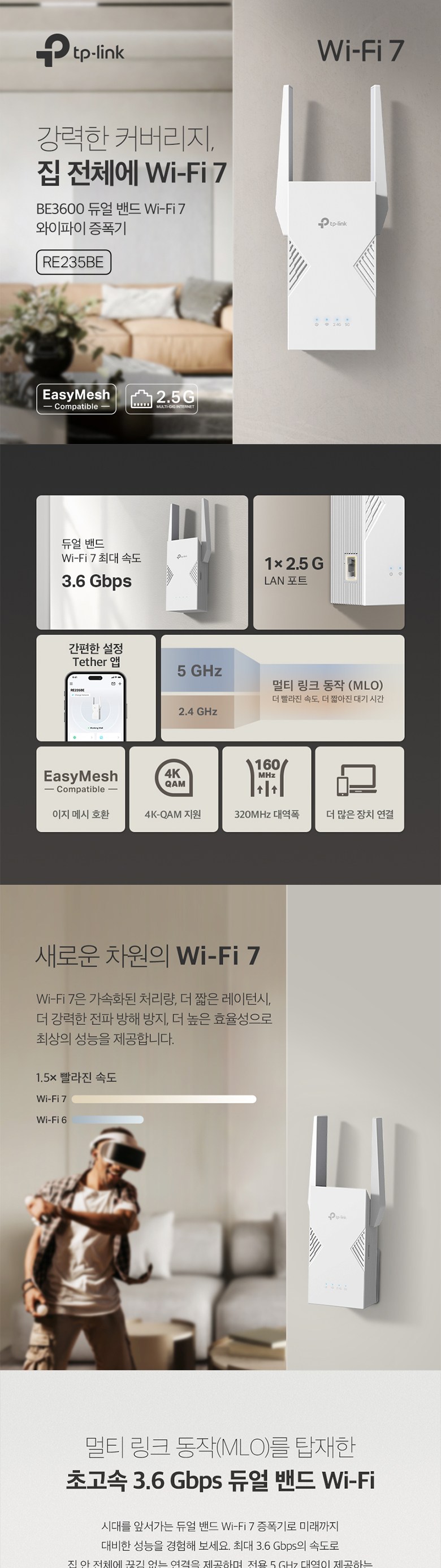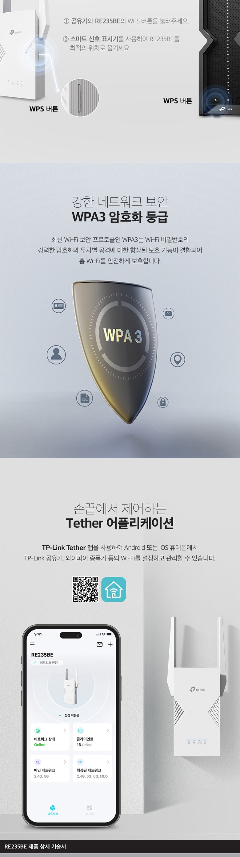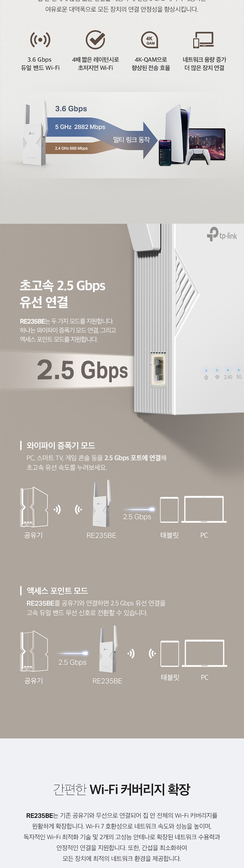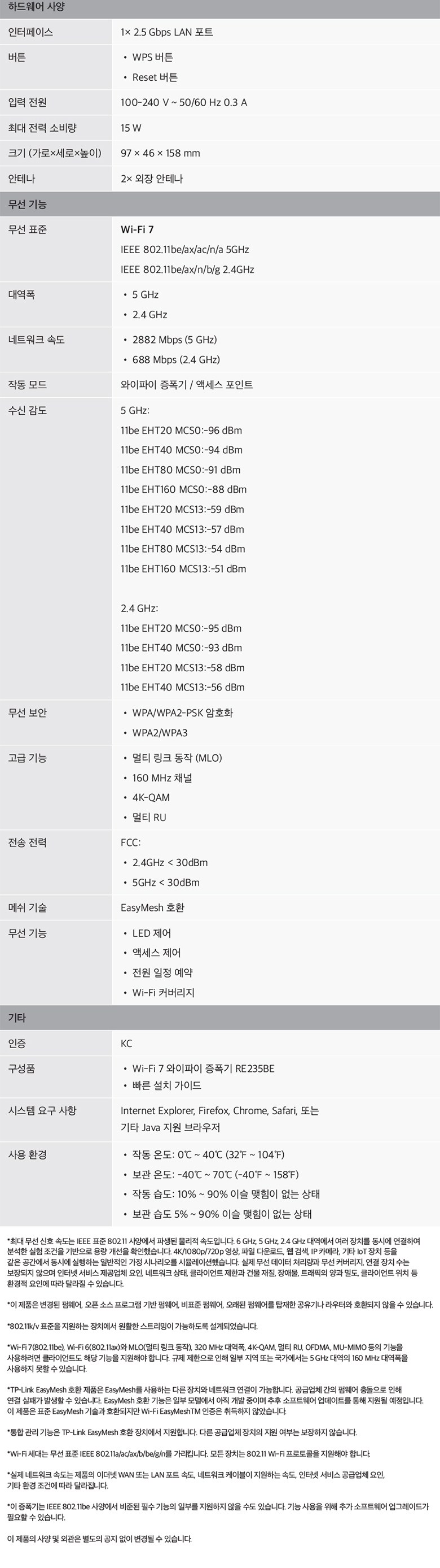 | 품명 및 모델명 | Wi-Fi 7 듀얼 밴드 와이파이 증폭기 / RE235BE | KC 인증정보 | R-R-TPG-RE235BE / 유/KC마크 |