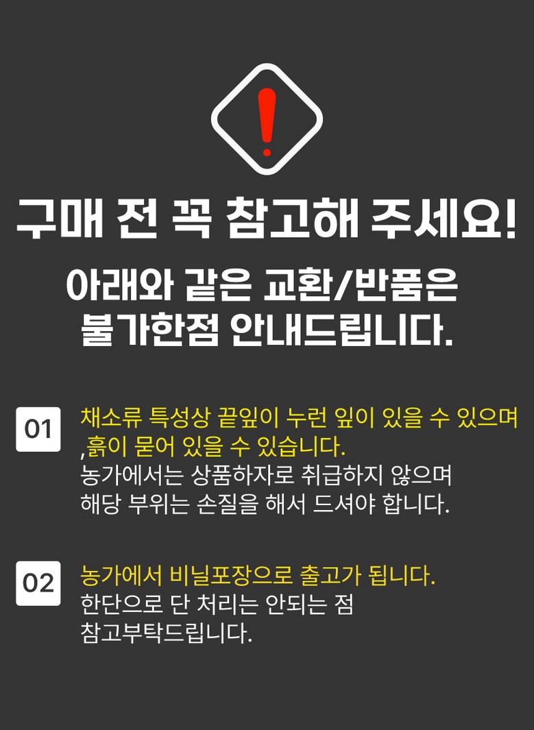 - ㆍ교환/반품에 관한 일반적인 사항은 판매자가 제시사항보다 관계법령이 우선합니다.