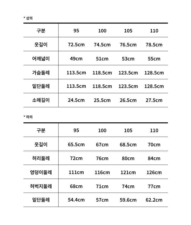 - 상의 사이즈: 남성 XL (105)