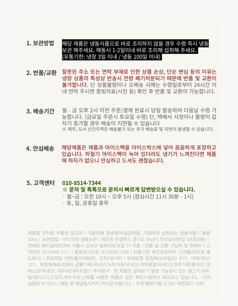 | 제조연월일, 소비기한 또는 품질유지기한 | 상품 상세페이지 참조 | 세부 품목군별 표시사항 | 상품 상세페이지 참조 |
