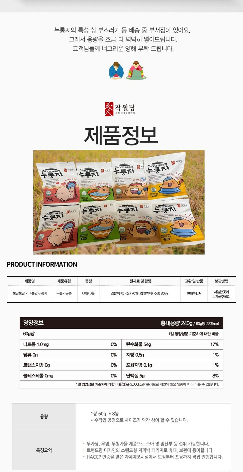 국내산 쌀 100% 양면으로 구운 끓여먹는 누룽지