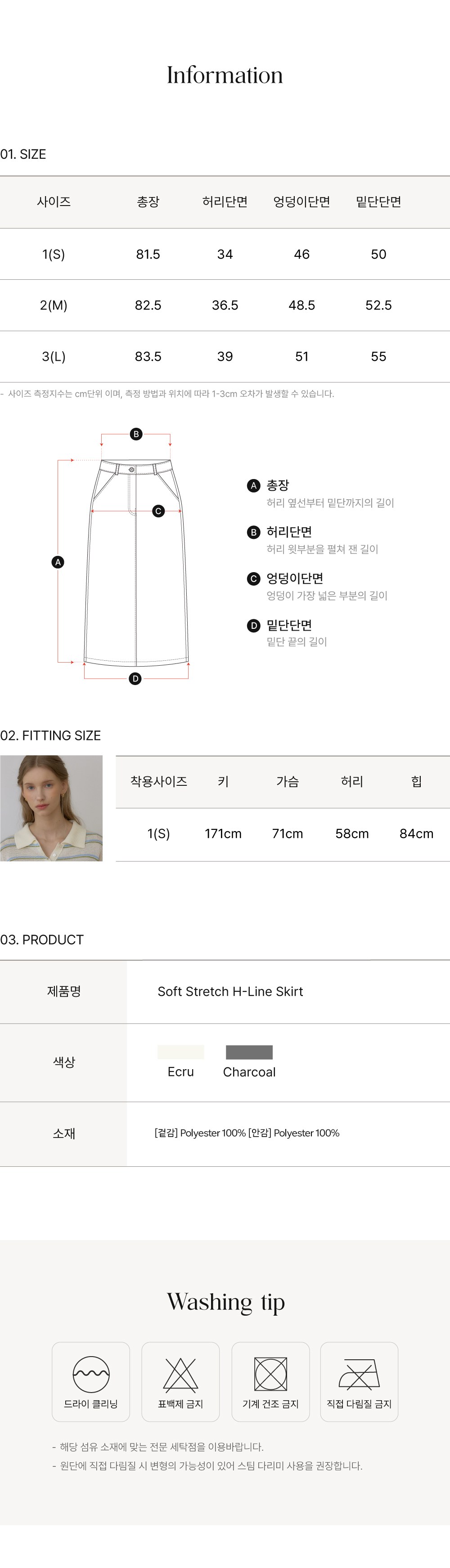 - 디자인: 슬림(H라인)스커트