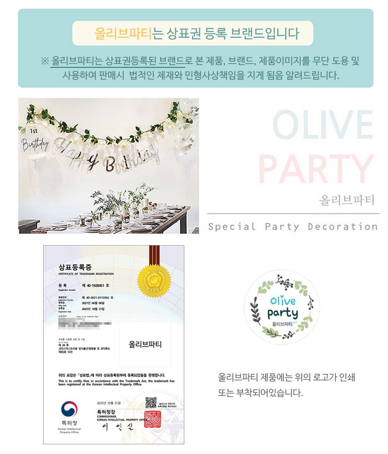 | 제조국(원산지) | 중국 | 제조자(수입자) | 올리브파티협력업체 |