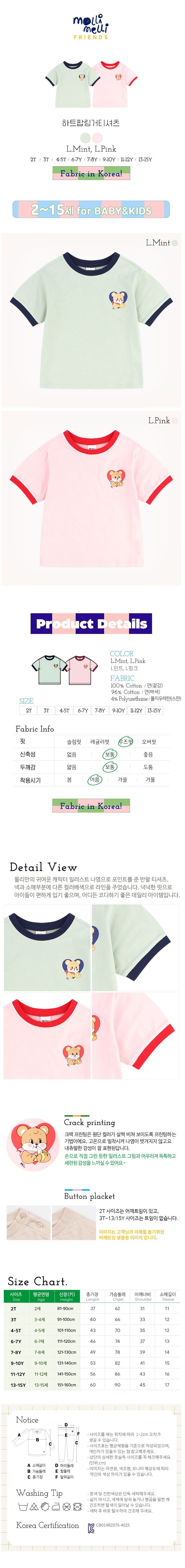 | 품명 및 모델명 | 몰리멜리프렌즈 하트팝링거티셔츠 | KC 인증정보 | CB014R2076-4025 |