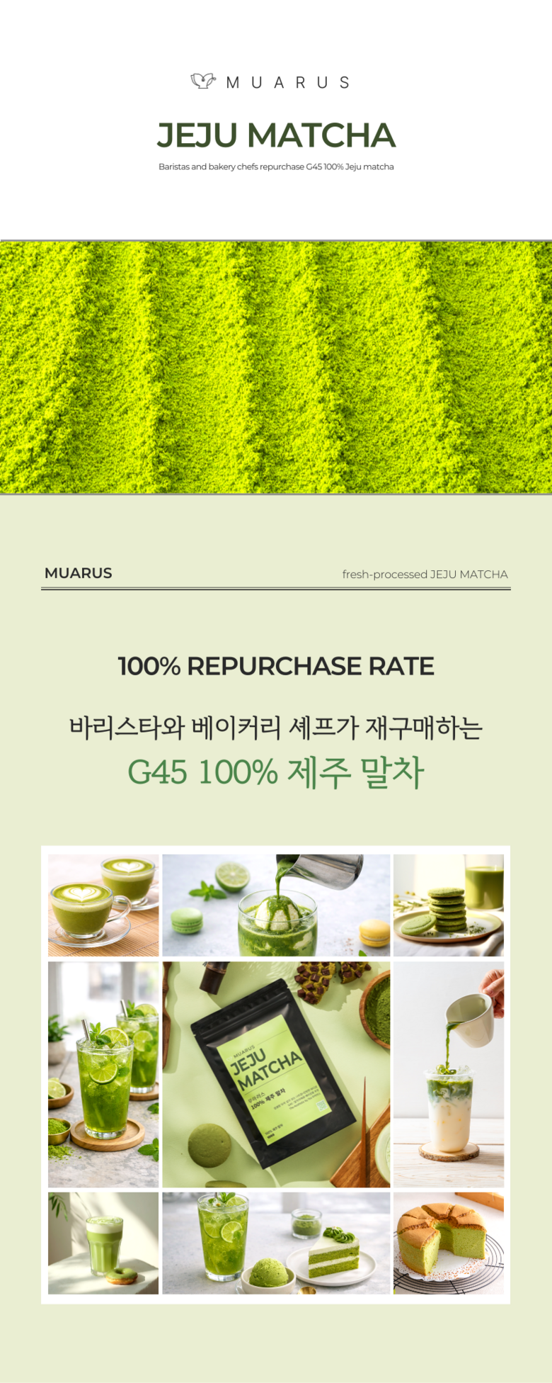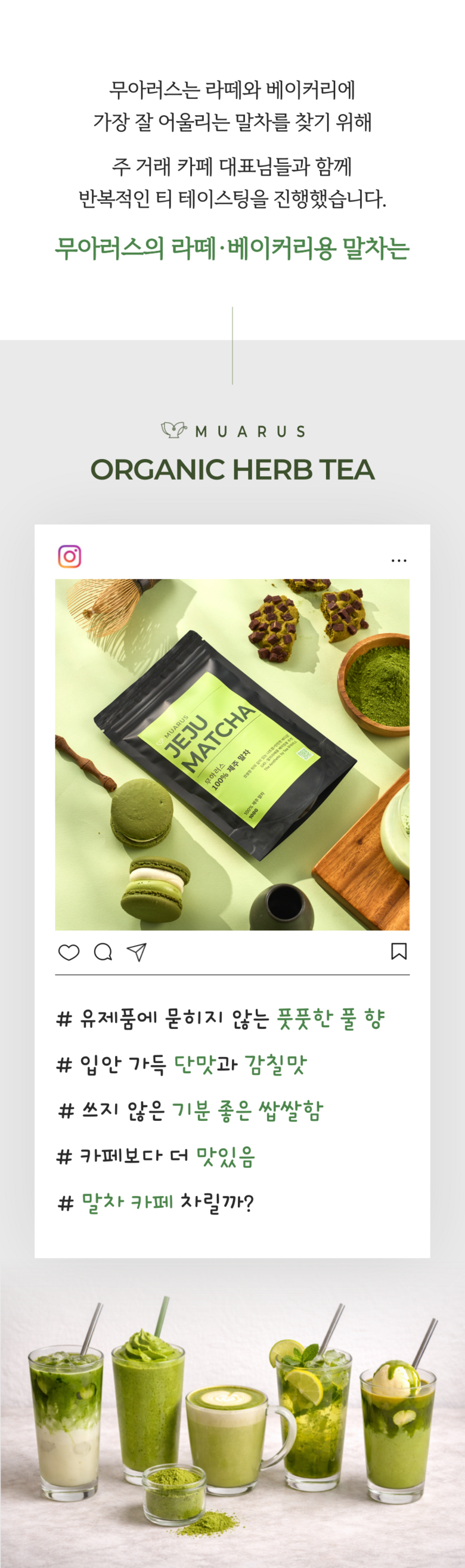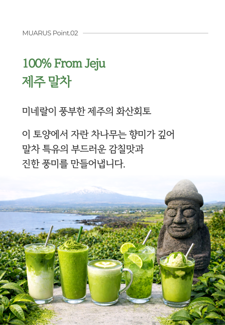 | 품목 또는 명칭 | 무아러스 100% 고급 제주말차 | 포장단위별 내용물의 용량(중량),수량,크기 | 100g |