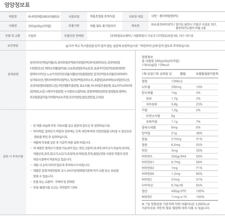 | 제품명 | 라벨 & 상세이미지와 동일하게 기재해주세요 | 식품의 유형 | 체중조절용 조제식품 |