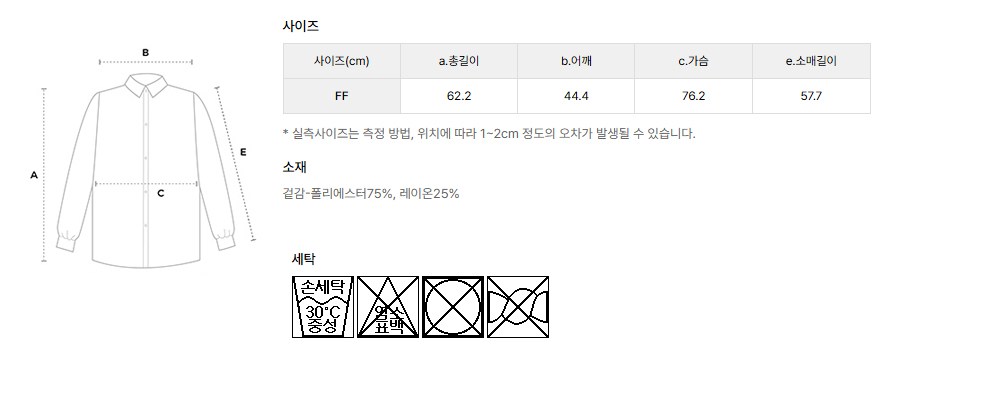 | 제조국 | 중국 | 세탁방법 및 취급시 주의사항 | 컨텐츠 참조 |