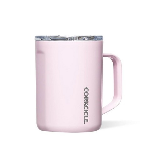 Corkcicle Sparkle 473.2ml(16온스) 커피 머그 트리플 단열 스테인리스 스틸 컵 투명 뚜껑과 실리콘 바닥 뜨거운 음료용 매트 블랙 284328