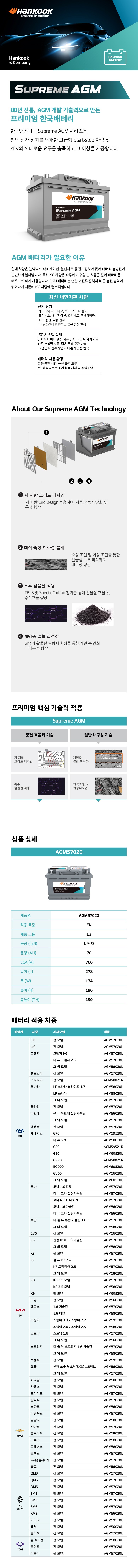 | 품명 및 모델명 | 차량용 배터리 / AGM57020 | 동일모델 출시년월 | 2025.05 |