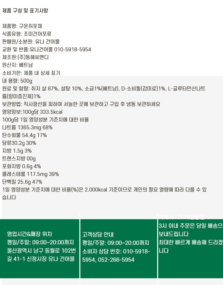 상호/대표자 | 유나상회 / 김영미 | 사업장 소재지 | 울산광역시 남구 봉월로102번길 41-1 신정시장 유나건어물 |