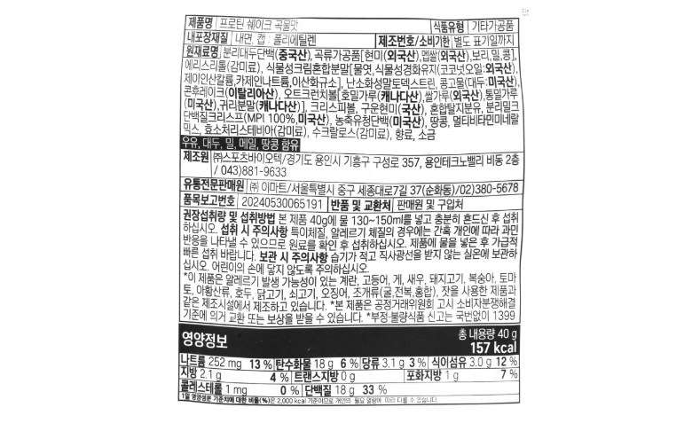 곡물맛 프로틴쉐이크