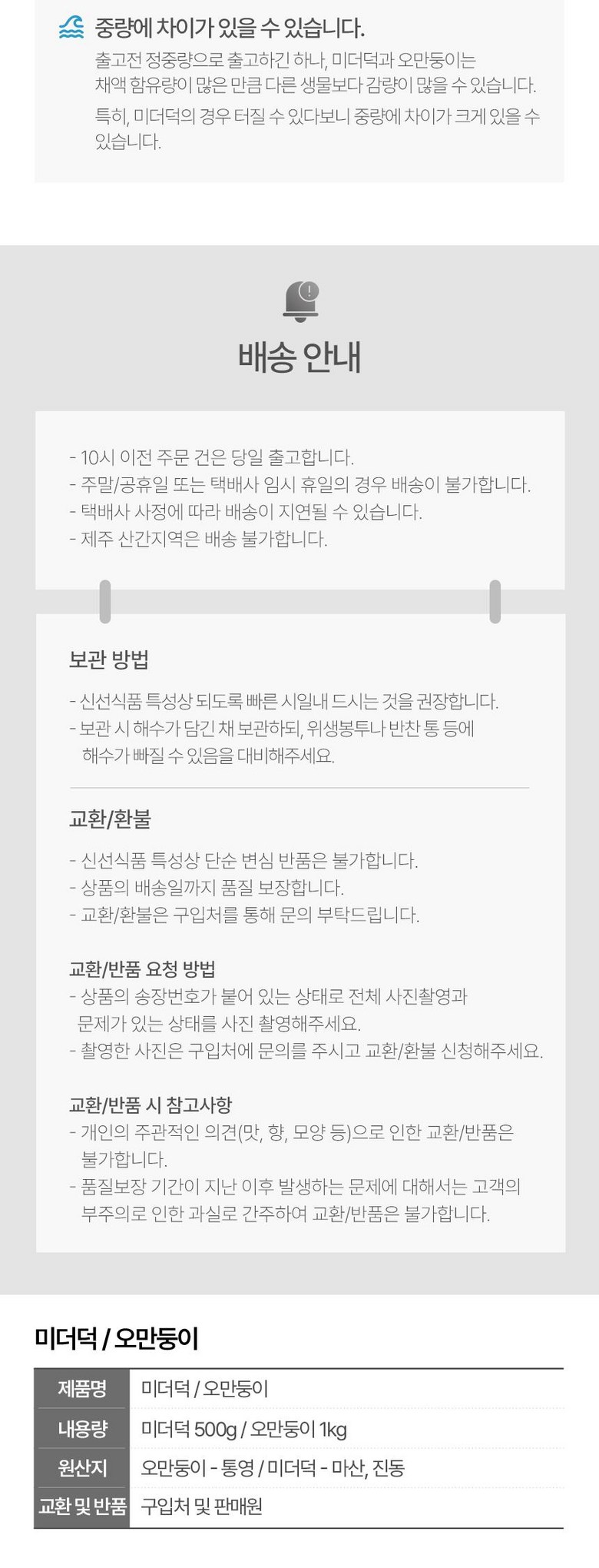 * 미더덕은 해수가 70%이기 때문에 CS 요청주시는 경우 미더덕이 안 터진 사진의 무게감량 사진으로
