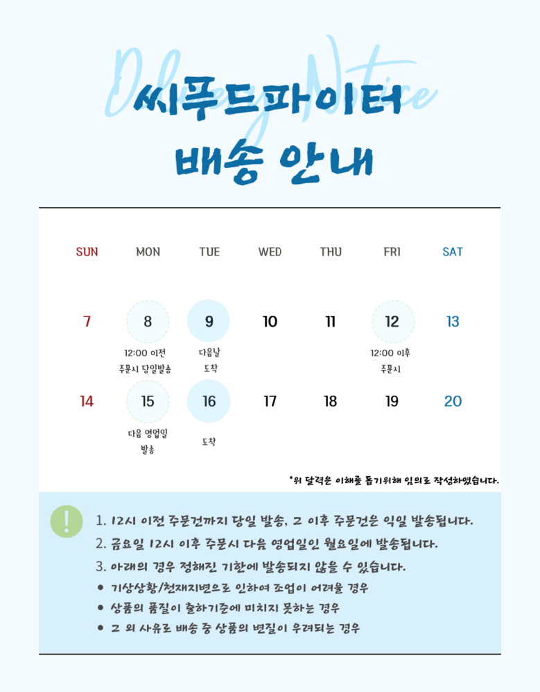 - ㆍ모니터 해상도의 차이로 인해 색상이나 이미지가 실제와 달라, 고객이 단순 변심으로 교환/반품을 무료로 요청하는 경우