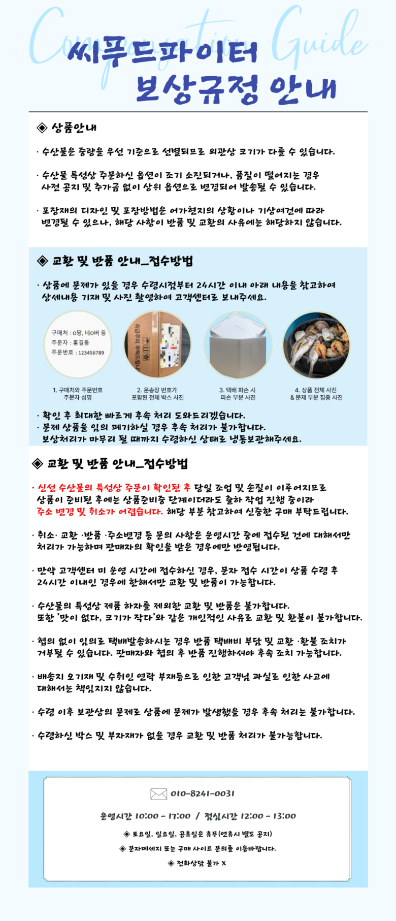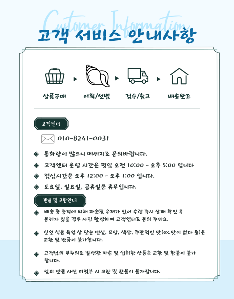 - ㆍ교환/반품에 관한 일반적인 사항은 판매자가 제시사항보다 관계법령이 우선합니다.
