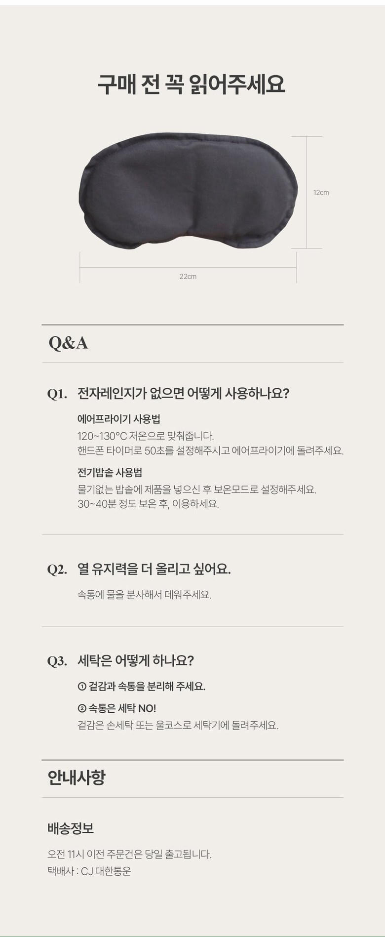 | 품명 및 모델명 | 따스잠 찜질팩 | 인증/허가 사항 | 황토볼 KC안전인증 인증번호 : CB061R6902-2001 |