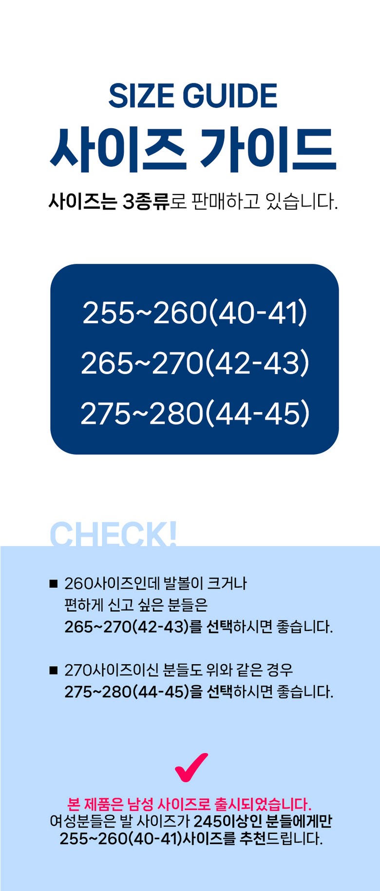 | 치수 | 발길이 : 260cm, 270cm, 280cm굽높이 : 4cm | 제조자(수입자) | 정상무역 협력사(정상무역) |