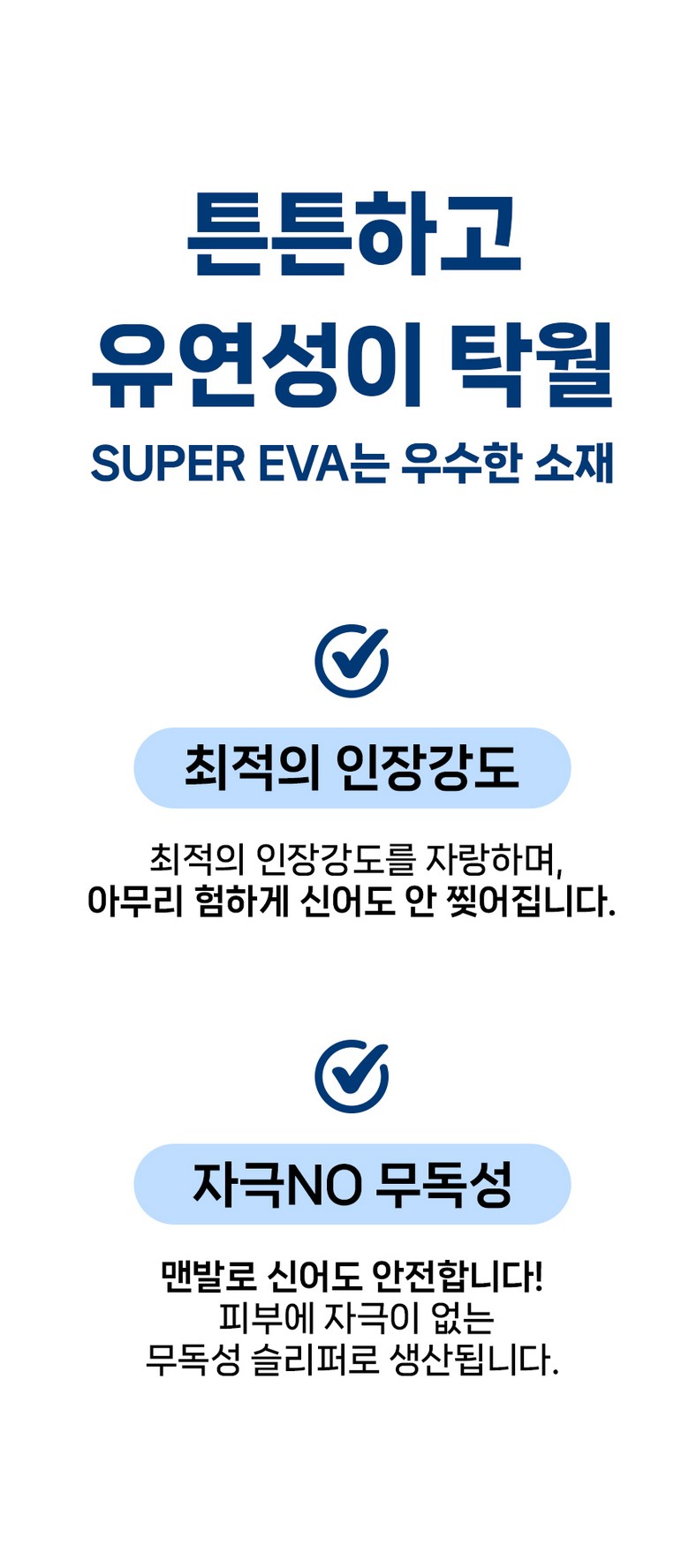 | 제품의 주소재(운동화인 경우에는 겉감,안감을 구분하여 표시) | EVA | 색상 | 블랙,그레이,그린 |