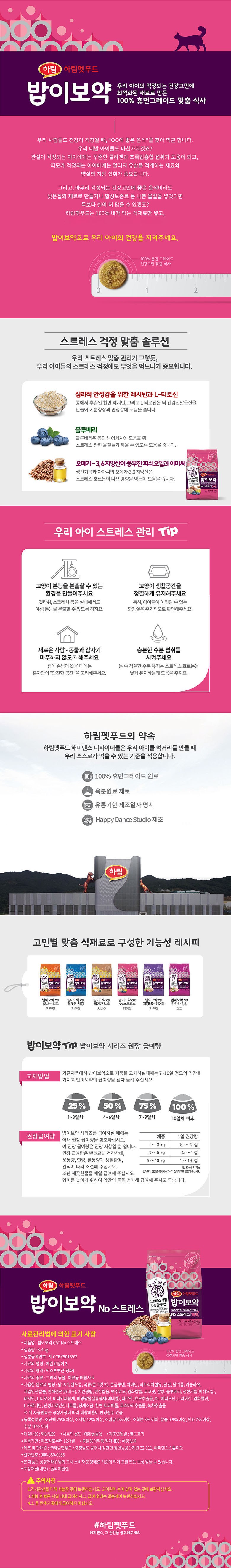 | 품명 및 모델명 | 밥이보약 CAT No 스트레스 | 인증/허가 사항 | 사료관리법에 따른 성분등록번호 : 컨텐츠 참조 |