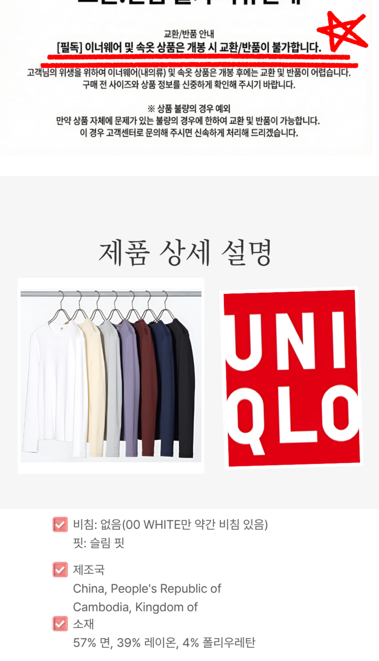 - ㆍ모니터 해상도의 차이로 인해 색상이나 이미지가 실제와 달라, 고객이 단순 변심으로 교환/반품을 무료로 요청하는 경우
