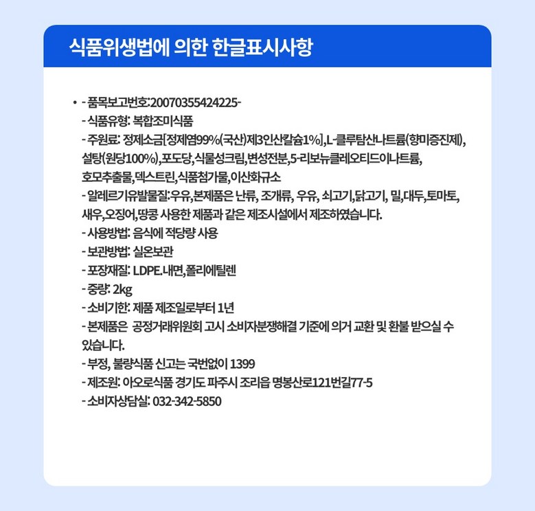 | 제품명 | 상품 상세페이지 참조 | 식품의 유형 | 상품 상세페이지 참조 |