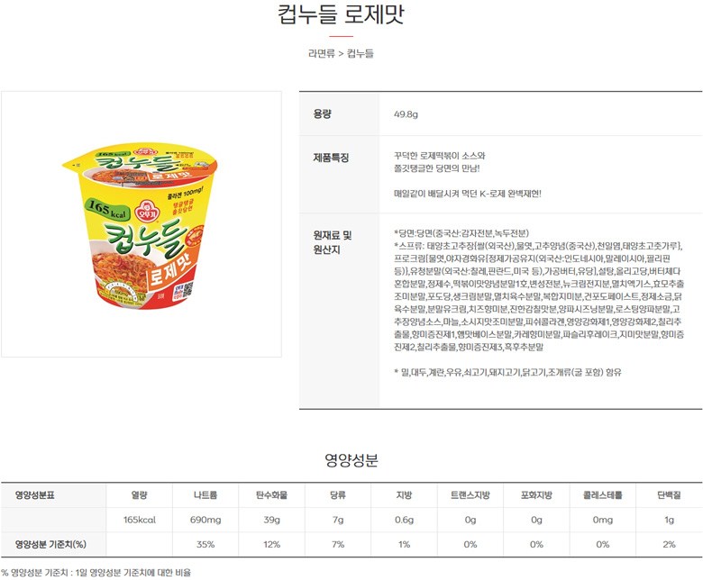 | 포장단위별 내용물의 용량(중량), 수량 | 상품 상세페이지 참조 | 원재료명 및 함량 | 상품 상세페이지 참조 |