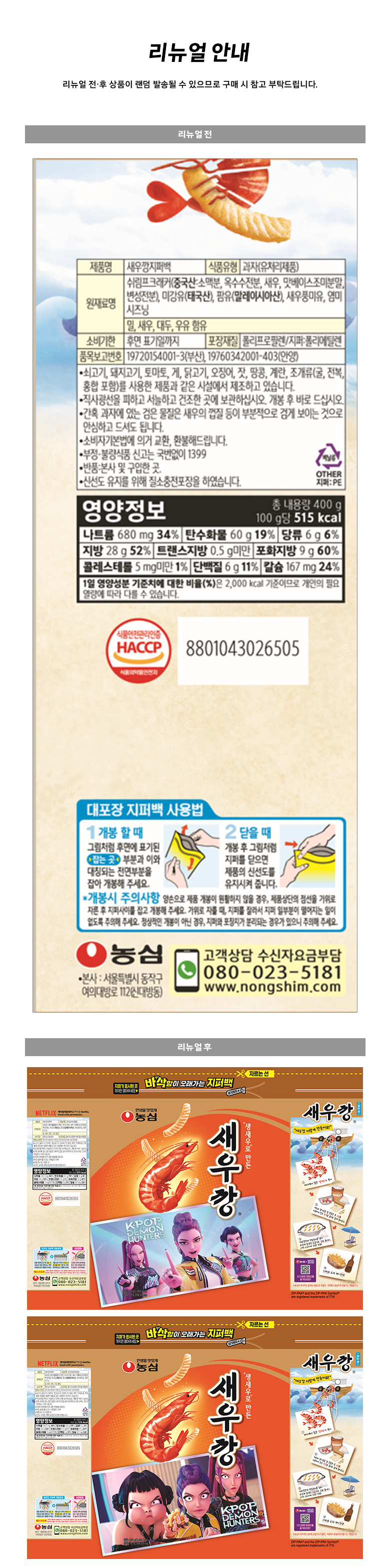 | 생산자 및 소재지 | ㈜농심/서울특별시 동작구 여의대방로 112(신대방동) | 제조연월일, 소비기한 또는 품질유지기한 | 소비기한(또는 유통기한) : 2026년 05월 10일 이거나 그 이후인 상품 제조년월일 : 2025년 11월 12일 이후인 제조상품 |