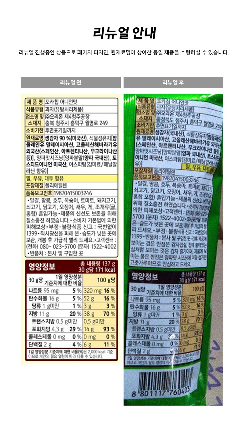 | 제품명 | 컨텐츠 참조 | 식품의 유형 | 컨텐츠 참조 |