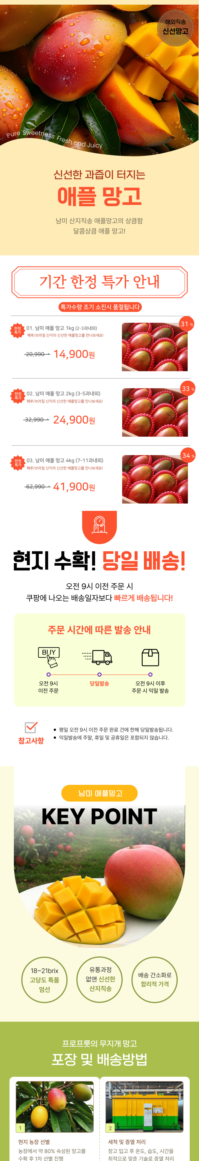 | 품목 또는 명칭 | 애플망고 | 포장단위별 내용물의 용량(중량),수량,크기 | 상품 상세페이지 참조 |