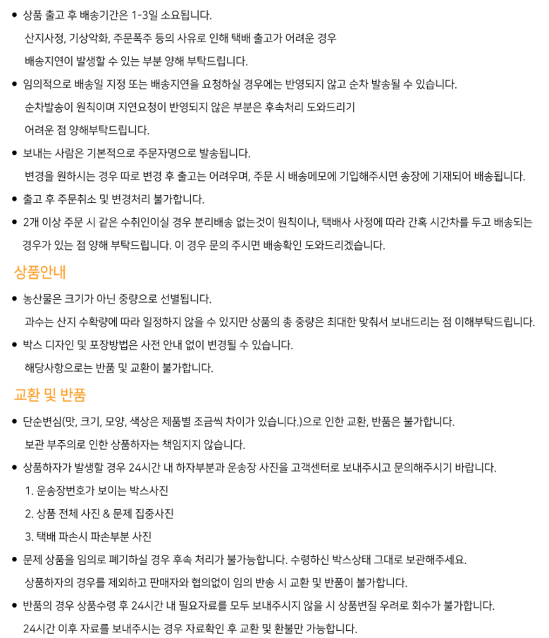 - ㆍ교환/반품에 관한 일반적인 사항은 판매자가 제시사항보다 관계법령이 우선합니다.
