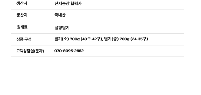 | 품목 또는 명칭 | 설향딸기 | 포장단위별 내용물의 용량(중량),수량,크기 | 소 700g,중 700g |