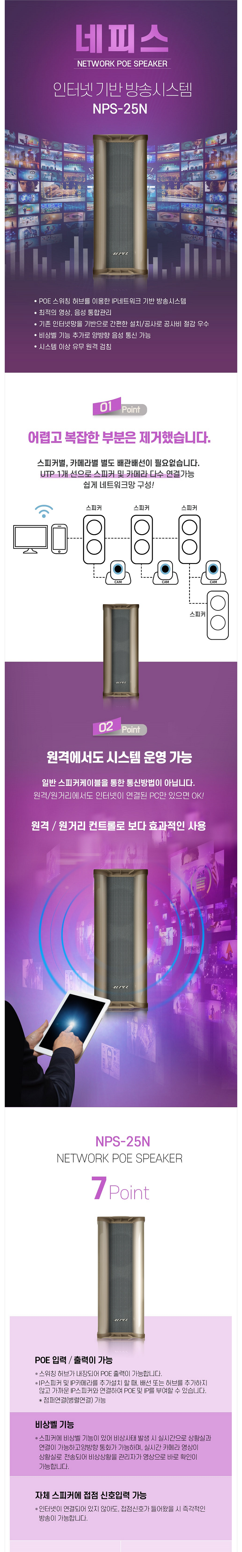 에펠 NPS-25N / 네피스 방송음향시스템 실외용 컬럼형 IP스피커 링크가능