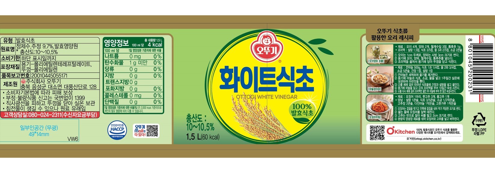 | 제품명 | 화이트식초 | 식품의 유형 | 컨텐츠 참조 |