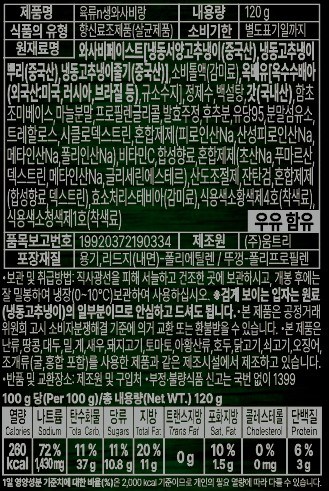 | 포장단위별 내용물의 용량(중량), 수량 | 120g, 1개 | 원재료명 및 함량 | 컨텐츠 참조 |