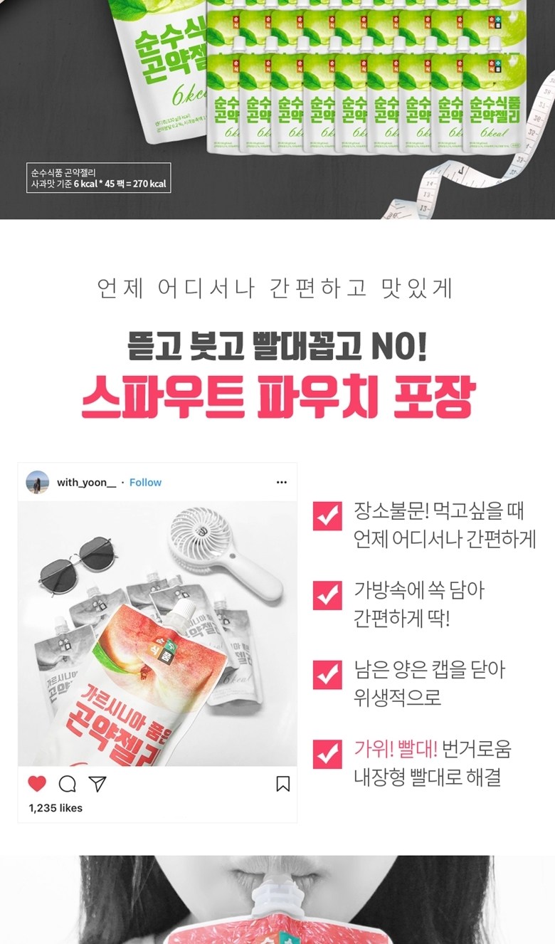 | 제품명 | 순수식품 곤약젤리 자몽맛 | 식품의 유형 | 캔디류 |