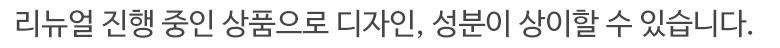 ※ 리뉴얼 진행중인 상품으로 "소비기한 또는 유통기한" 이 표시된 제품을 수령하실 수 있습니다.