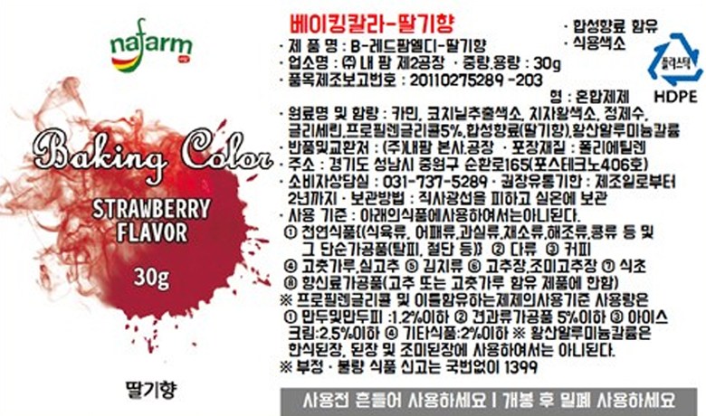 | 제품명 | B-레드팜엘디-딸기향 | 식품의 유형 | 혼합제제 |