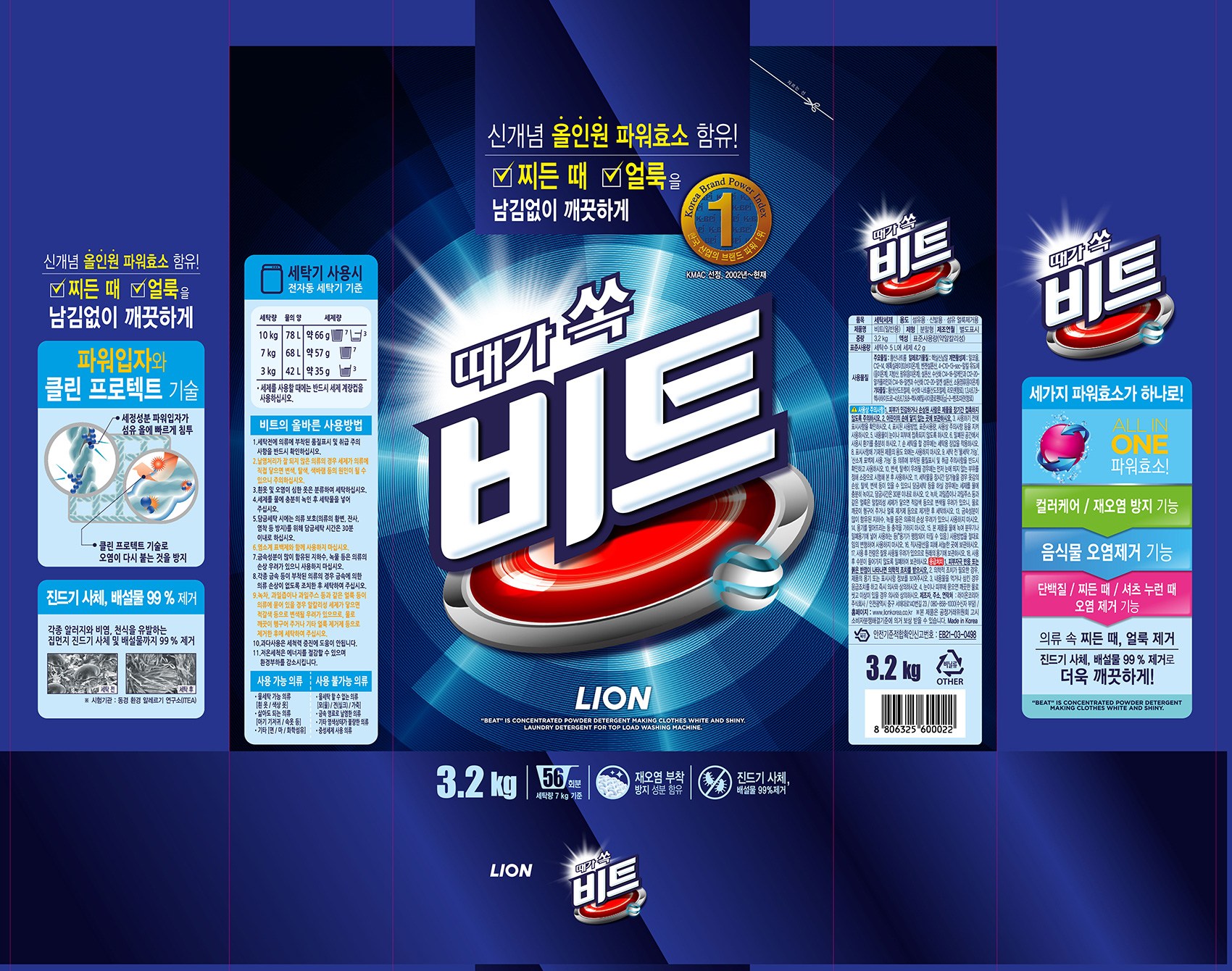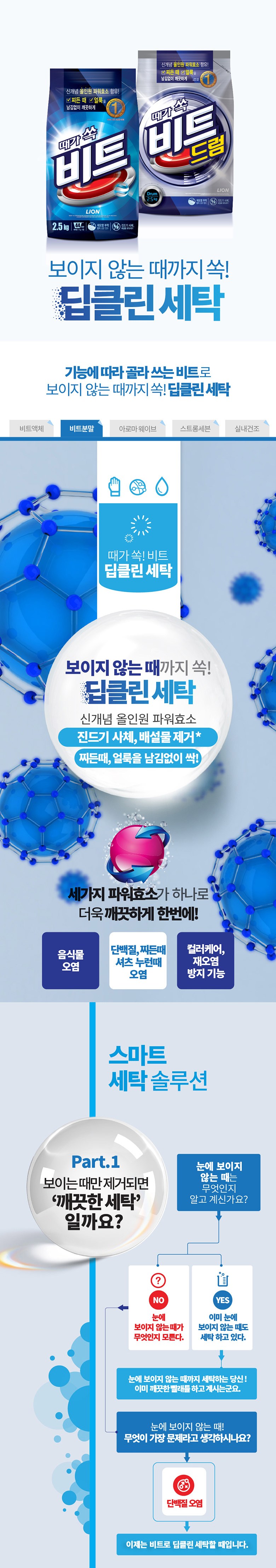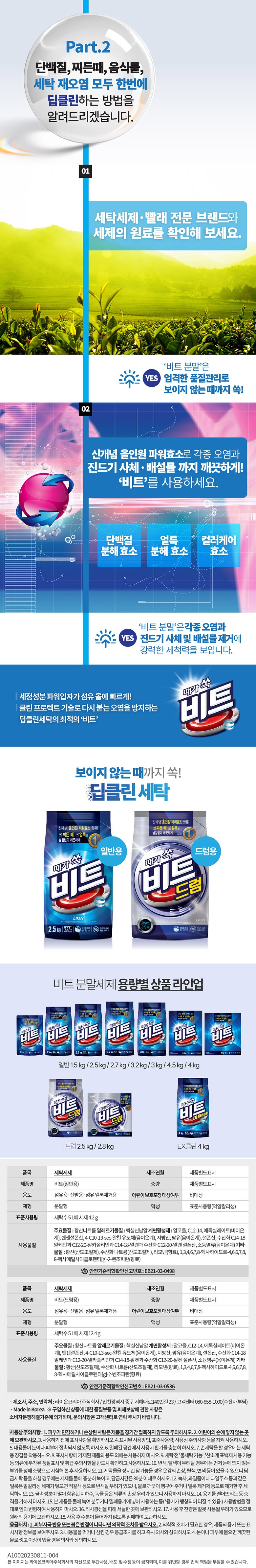 | 품목 및 제품명 | 세탁세제 / 비트(일반용) | 용도(표백제의 경우 계열을 함께표시) 및 제형 | 섬유 얼룩제거용,신발용,섬유용 / 분말형 |